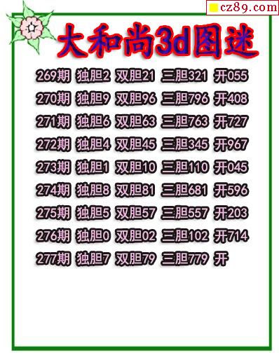 > 大和尚三胆2025277期3d图谜(原创)